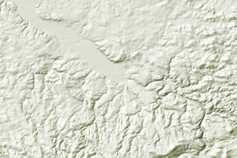 Die Kombinationsschummerung verbindet die Vorteile von Schräglichtschummerung und Böschungsschummerung. Schattenhänge erhalten eine starke, Lichthänge lediglich eine dezente Schattierung. Ebenen bleiben weiß.