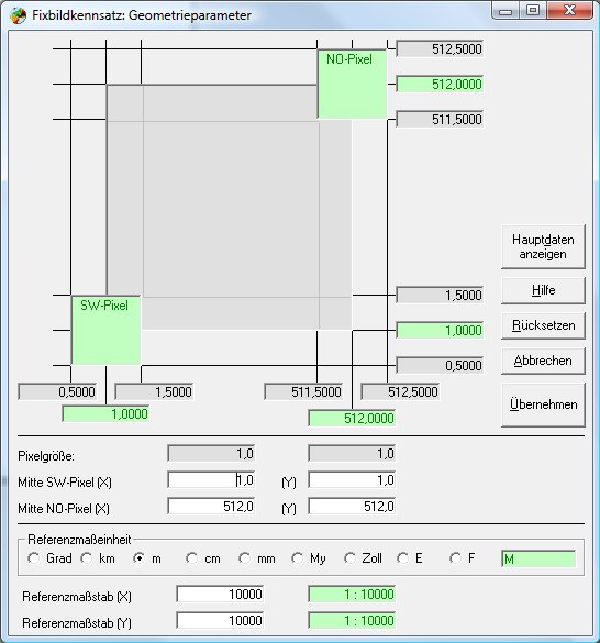 Die Geometrieparameter (Bildverwaltung/Geometrieparameter) legen die Georeferenzierung eines Bildes fest ...