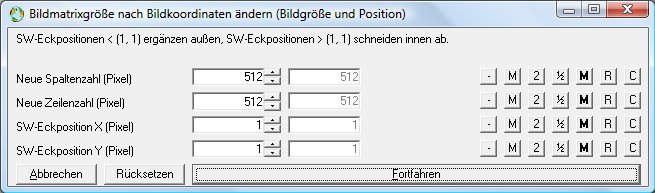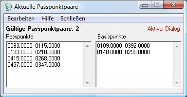 Bevor ein Bild mit Passpunkten entzerrt werden kann, können im Menü Geometrie/Passpunktdialog die erforderlichen Passpunktpaare eingegeben werden.