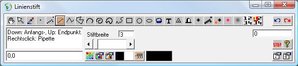 Das Zeichenwerkzeugfenster (Extras/Zeichenwerkzeuge) stellt verschiedene einfache und leicht handhabbare Werkzeuge für kleinere Zeichenarbeiten und Bildretuschen bereit.