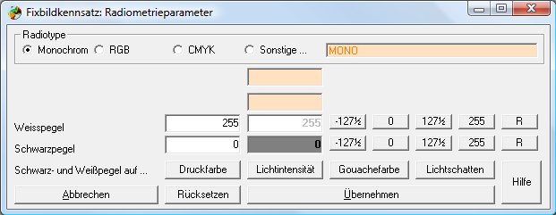 Die Radiometrieparameter (Bildverwaltung/Radiometrieparameter) bestimmen die Grauwertinterpretation ...