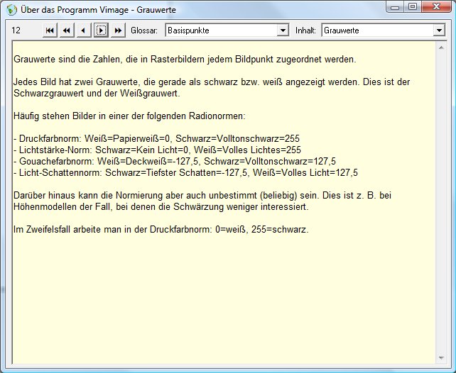 Im Menü Hilfe/Vimage-Hilfe stehen Hilfe-Texte bereit: