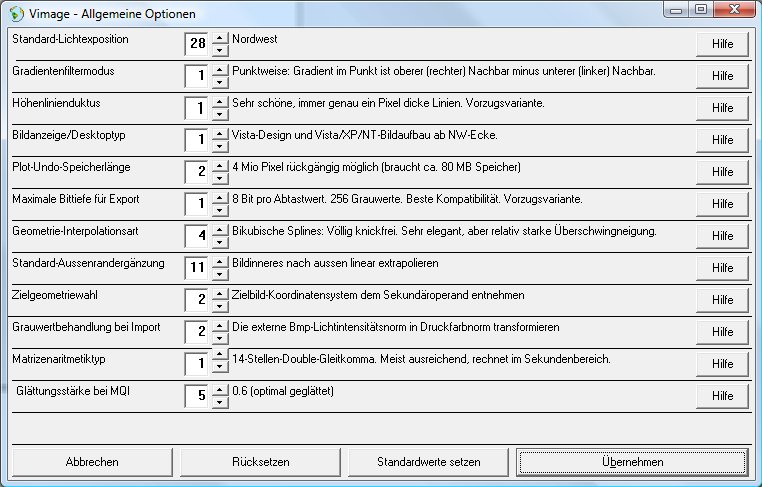 Die Optionen sind globale Hintergrundeinstellungen, die nur selten verändert werden. Sie werden im Optionenfenster (Datei/Optionen) eingestellt