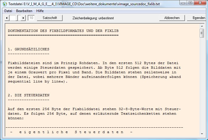 Vimage speichert Bilder in einem speziellen Dateiformat - dem Fixbildformat. Mit jedem Bild sind fundamentale Steuerparameter verbunden.