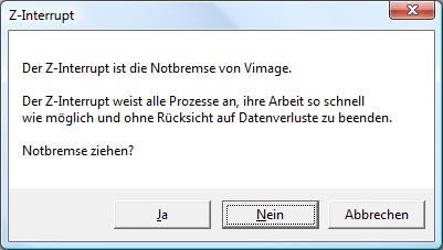 Dies ist der sog. Z-Interrupt - die Notbremse von Vimage.