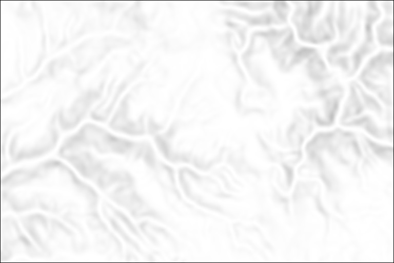 Stärkere Hänge betont wiedergeben, ohne die Grafik zu sehr zu belasten, das ist die Aufgabe der zweiten Platte. Hier ist eine kontrastreiche aber helle Böschungsschummerung das Mittel der Wahl. Bitte das Höhenmodell dem.fix öffnen und neu einlesen. Nun wird mit Schummerung/Böschungsschummerung und Kontrast 3 eine kräftige Basisschummerung erzeugt: