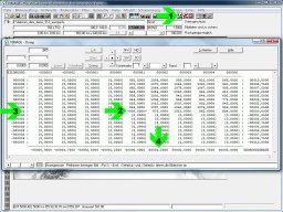 - Pfeil 4: Rechts und unten stehen Geokoordinaten. Das Höhenmodell hat Maßstab 1:12,5 Millionen und Pixelgröße 0,1 mm. In 1:12,5 Millionen entspricht 0,1 mm in der Karte 1,25 km in der Natur. Folglich haben die Pixel einen Abstand von 1,25.