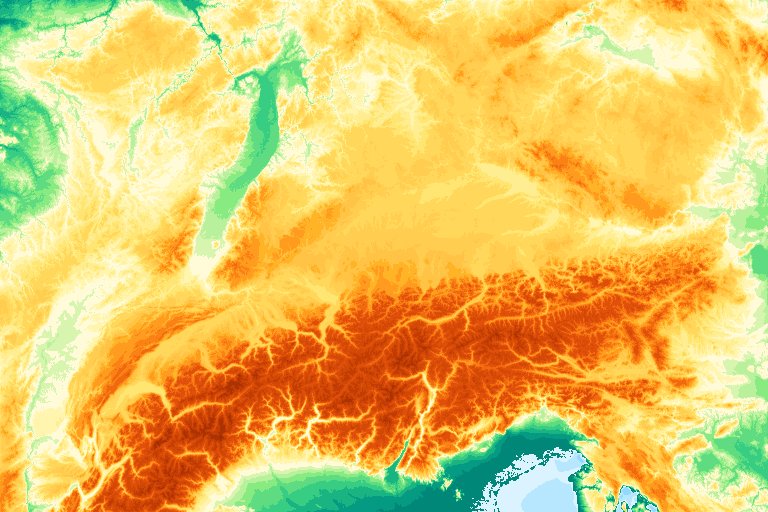 Höhenschichtendarstellung von Mitteleuropa und den Alpen