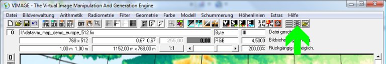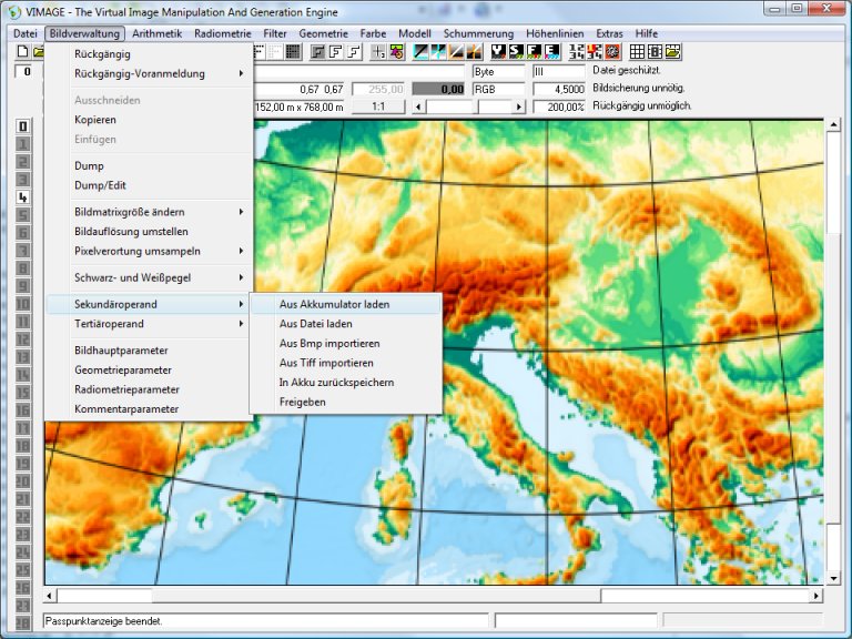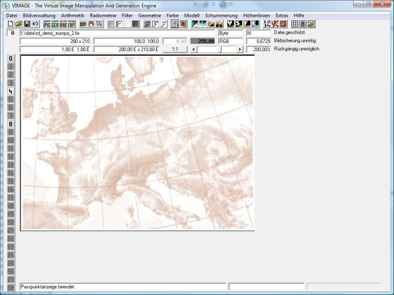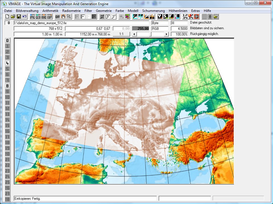 Im Mitteilungsfenster erscheint Option Zielgeometriewahl eingestellt auf: Zielbild-Koordinatensystem dem Sekundäroperand entnehmen. Diese Optionseinstellung ist wichtig. Sie braucht aber nur einmal ausgeführt werden. Die Option wird in der Registry gespeichert und steht bei nachfolgenden Vimage-Rufen automatisch richtig.