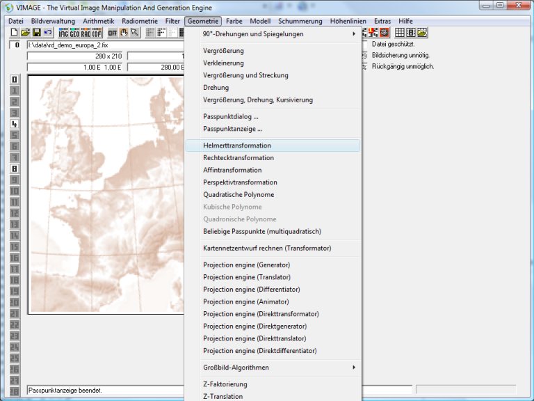Nun kann im Hauptmenü Geometrie/Helmerttransformation aufgerufen werden: