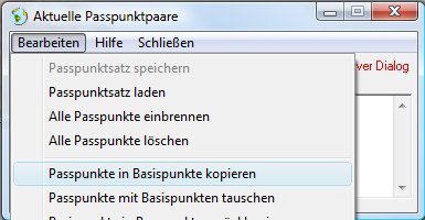 (Anmerkung: Statt Bearbeiten/Passpunkte in Basispunkte kopieren und Bearbeiten/Alle Passpunkte löschen geht auch Bearbeiten/Passpunkte mit Basispunkten tauschen.)