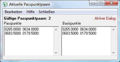 Man bemerkt: Im Passpunktdialogfenster haben die Punkte auf der „Basispunktseite“ zugehörige Positionen auf der „Passpunktseite“ erhalten.