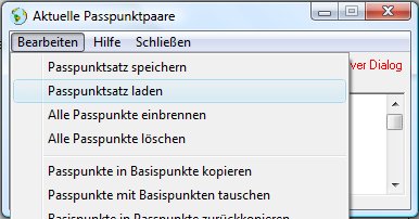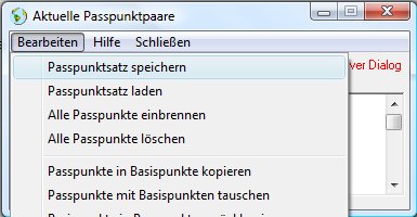 Im Menüfenster Bearbeiten (und auch bei Rechtsklick in das Bild) öffnet sich ein Kontextmenü, das weitere Operationen bereithält, u. a. das Löschen evtl. falsch eingegebener Passpunkte.
