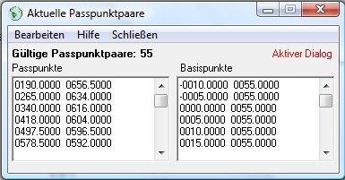 Jetzt stehen die richtigen Koordinaten unserer 55 Passpunktpaare exakt im Passpunktdialogfenster: