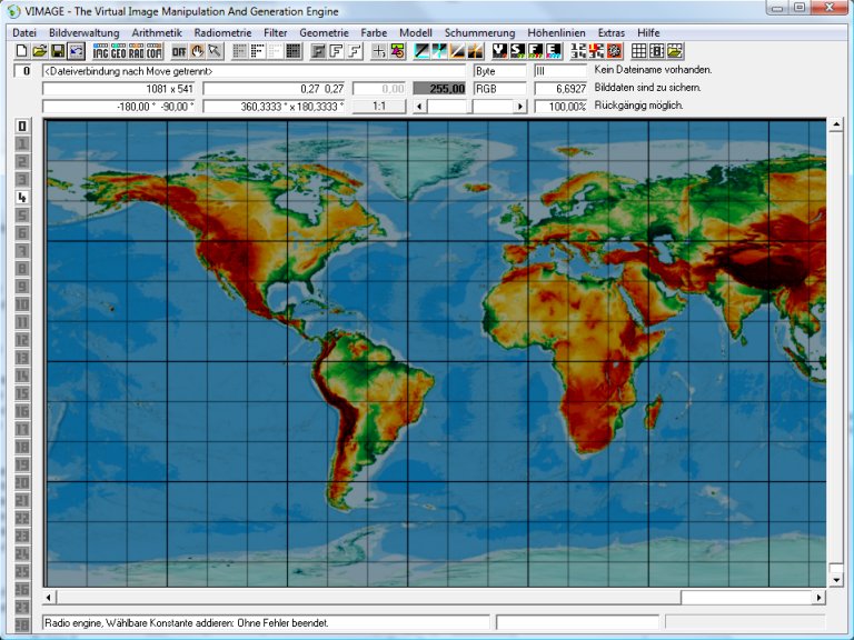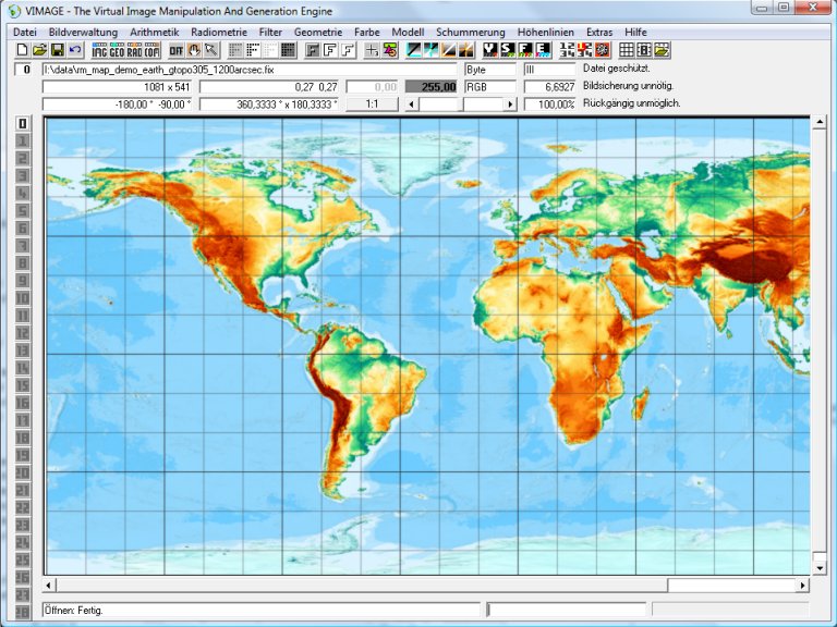 Irgendein Bild in Vimage laden. Dies kann das Bild rm_map_demo_earth_gtopo305_1200arcsec.fix (ca. 1,6 MByte) sein oder ein beliebiges anderes Bild.