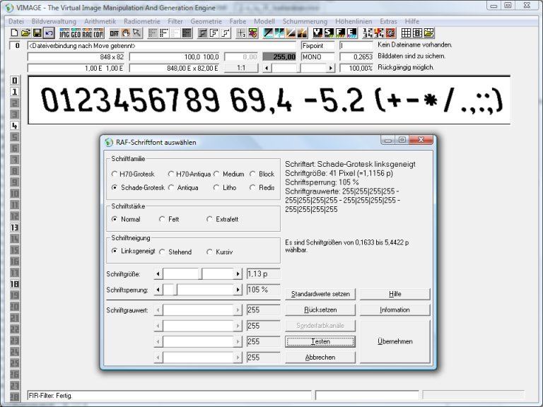 - Schriftgröße, wird in Pixeln Ziffernhöhe angegeben und kann 5 bis 200 Pixel betragen,