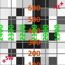 - die Koordinate der Südwestecke des Sudwestpixels abgezogen wird.