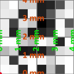 Kartenkoordinaten beginnen bei 0, 0 und enden genau bei der Bildgröße, hier 4×4 mm.